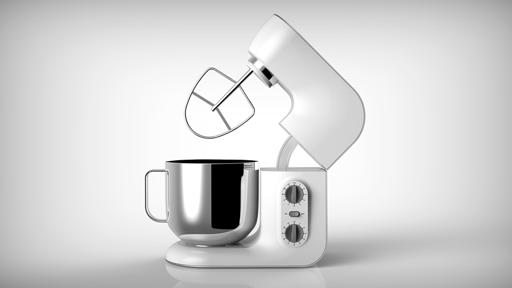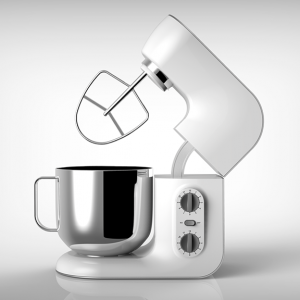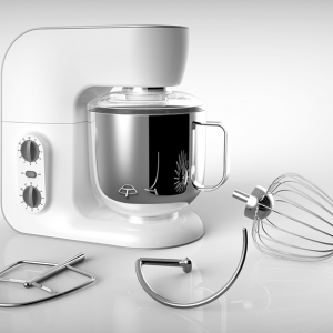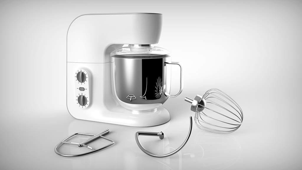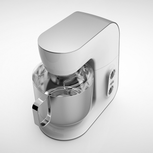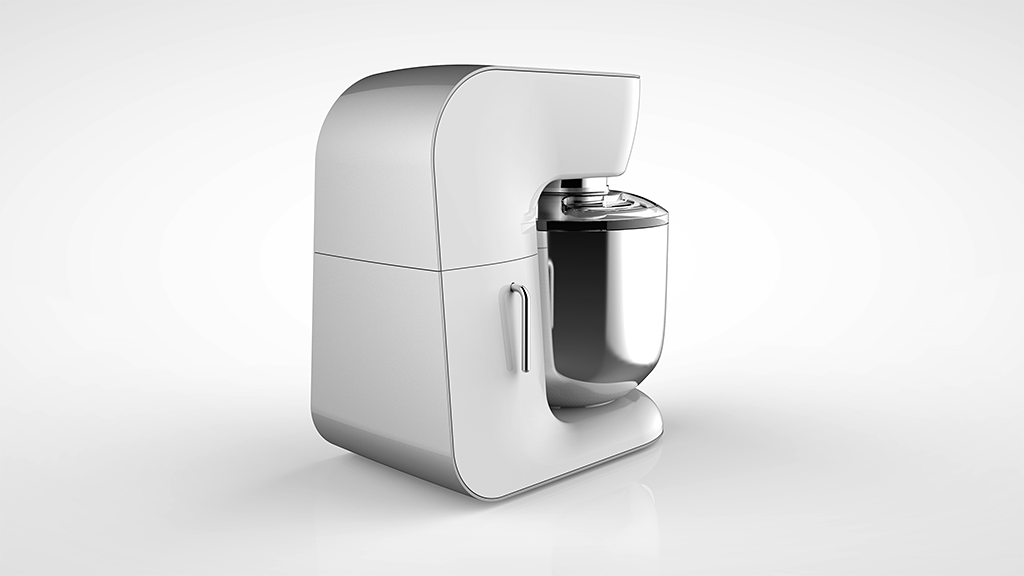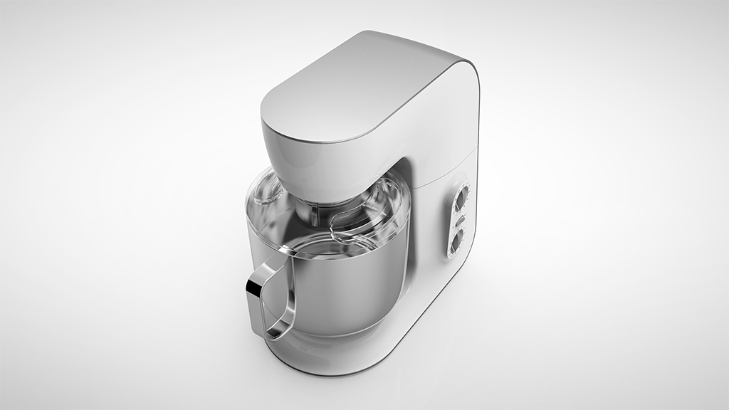 產(chǎn)品定位為一款使用環(huán)境定位兼容普通家用和商用的多功能型廚房料理機,具有揉面,打蛋,攪拌等功能。傳動部分主要是皮帶帶動齒輪傳送攪拌力。產(chǎn)品機身材質(zhì)采用鑄鋁機身材質(zhì)和ABS工程塑料搭配,與傳統(tǒng)單純鑄造機身相比具有更加輕巧的造型,不同的材質(zhì)對比也彰顯產(chǎn)品的品質(zhì)。
